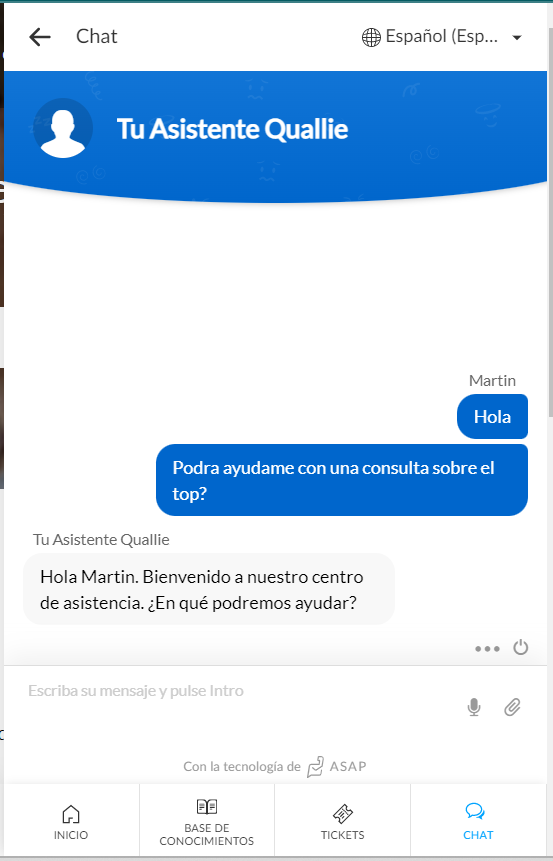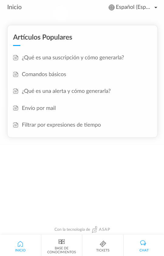 Además de encontrar los tickets y la base de conocimientos, tendrá disponible la sección de chat.